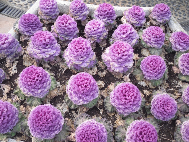 Am văzut nişte “spaţii verzi” de un mov splendid, cu plante ornamentale ce semănau cu nişte verze creţe pitice.