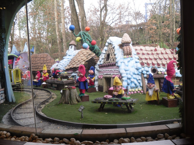 Puteţi lua şi trenuleţul pentru a face o plimbare în lumea spiriduşilor, unde veţi vedea prăjituri uriaşe şi case din turtă dulce cu decoraţiuni din bomboane.