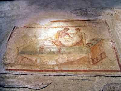 Pompeiul este renumit şi pentru frescele ce reprezintă scene erotice. În lupanar, există imagini ce descriu “meniul zilei”, cu rol inspirator pentru clienţi. De remarcat este patul, deosebit de mic (femeile în acea epocă aveau în medie o înălţime de 1.55 m, iar bărbaţii de 1.65 m) .