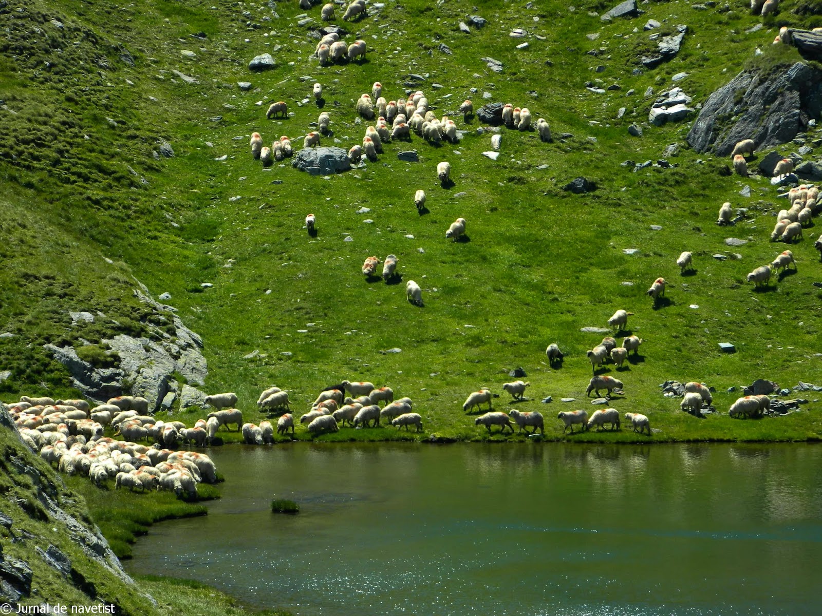 Startul l-am dat în jur de ora 13, cu o echipă din care au făcut parte de această dată şi 3 mămici. Din păcate cea care credeam că o să facă faţă acestei experienţe a cedat după numai câteva minute… Am lăsat în urmă zgomotul de maşini şi motoare şi am ajuns la Lacul Capra (2230) unde, ce să vezi, se adăpau oile.
