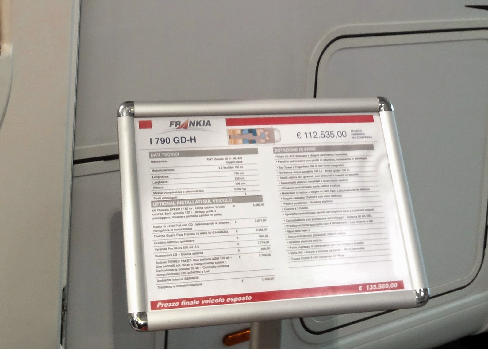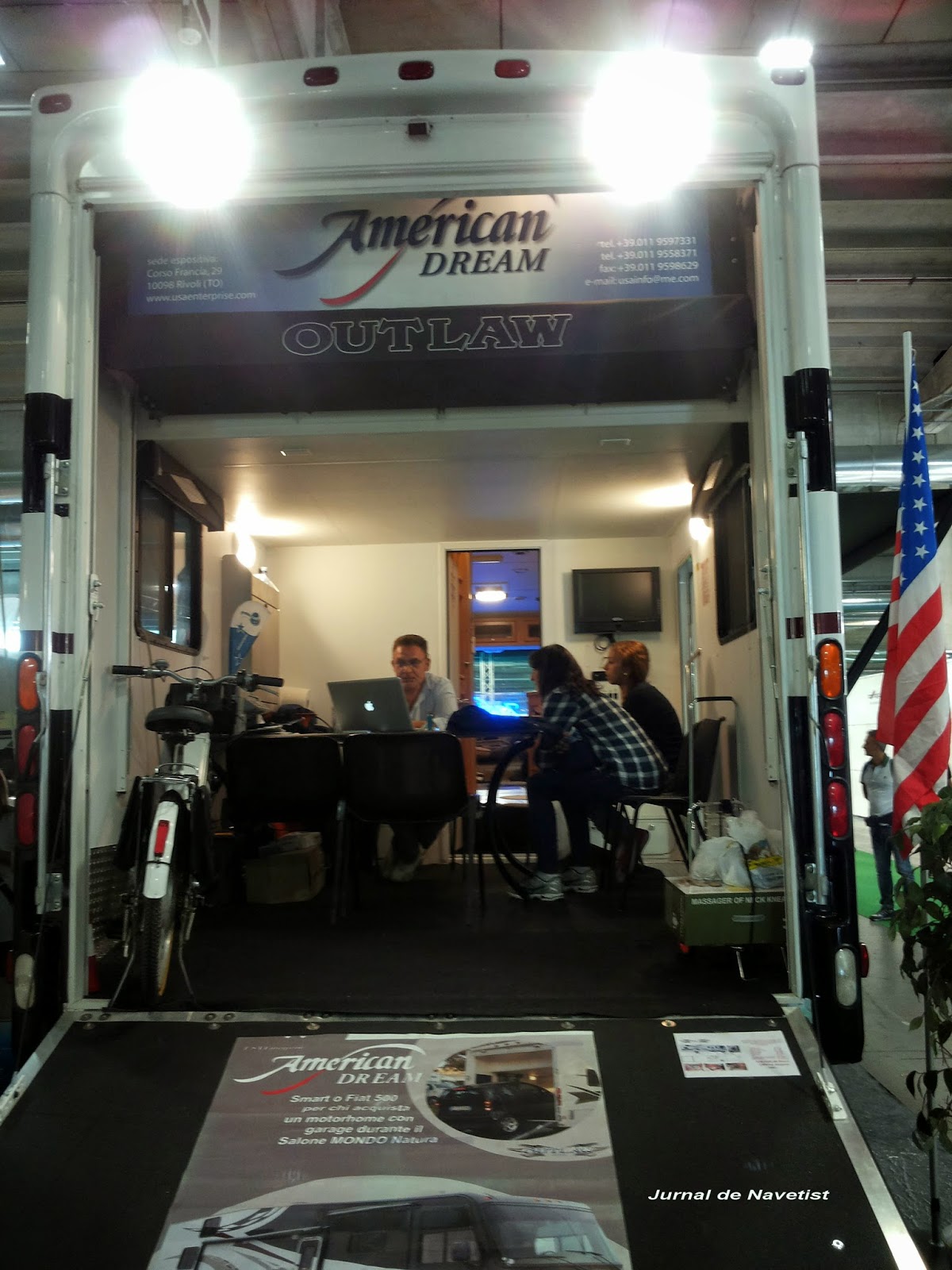 Am ajuns în zona caravanelor americane: falnice, făloase, imense, imposibil de manevrat pe străduţele înguste din Italia. Aici, cu doar 136.000 Euro puteai să îţi împlineşti “visul american”. Gândiţi-vă câte griji vă poate aduce o astfel de achiziţie: unde o ţii, cum o întreţii, cât consumă, unde o parchezi, cât stres ai să nu ţi-o fure cineva din parcare.