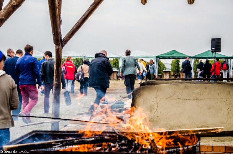 Au început să apară şi oaspeţii: unii cu autocarul, mai voioşi, alţii cu maşina, mai îngânduraţi la gândul că aveau să conducă la întoarcere. Au urmat prezentările, apoi au fost aduse bucatele iar vinul a început să curgă din belşug. Platourile rustice cu jumeri şi brânzeturile cu ceapă şi ardei gras au fost asortate pentru început cu un vin Alira Rosé şi cu Lauri Cuvée Rosa (Rosé). Au urmat frigărui de pui, zacuscă şi o excelentă pastramă de oaie. Ca desert, plăcinte şi cozonac. Despre vinuri, o să vă spun doar că deosebit de apreciat a fost un Alira Merlot care, prin tărie şi culoare, a reuşit să încălzească atmosfera.
