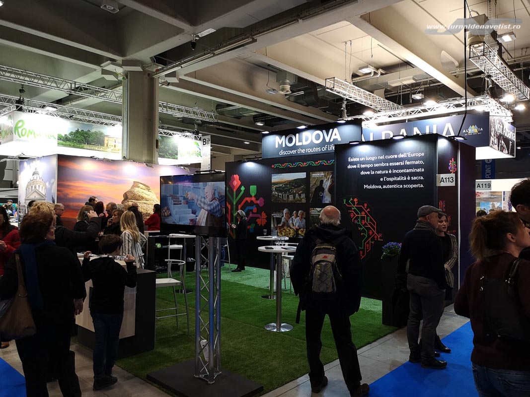 Da, Moldova s-a prezentat admirabil anul acesta la BIT Milano: cu o strategie de imagine bine pusă la punct și o identitate vizuală în care se găsesc culorile covoarelor tradiționale, standul țării atrăgea de departe atenția prin originalitate. Nu mare ne-a fost mirarea să descoperim că au organizat și un eveniment de show cooking în care pregăteau bucate tradiționale. Alte elemente de promovare erau broșurile cu obiectivele turistice de vizitat, harta vinurilor, pungile inscripționate.